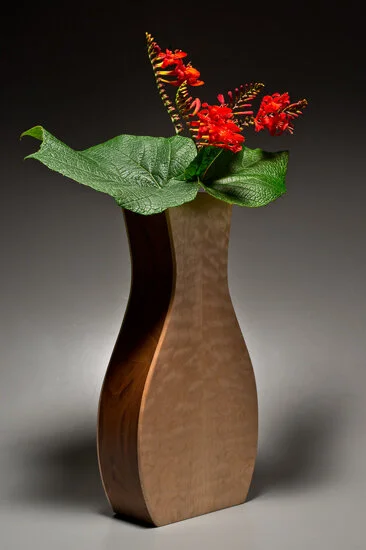 mahogany chair / figured and spalted maple seat, curly maple backrest. 22" x 22" x 34"